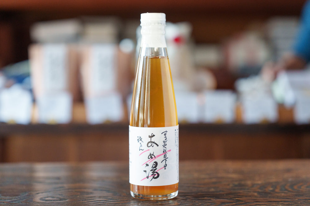 当店の人気商品の一つである「ひやしあめ」は、麦芽飴と砂糖、国産の自然の恵み豊かな生姜のみを使用し、昔ながらの素朴な味わいを再現しました。麦芽飴のふくよかな甘さは生姜の辛味をまろやかにし、喉を潤します